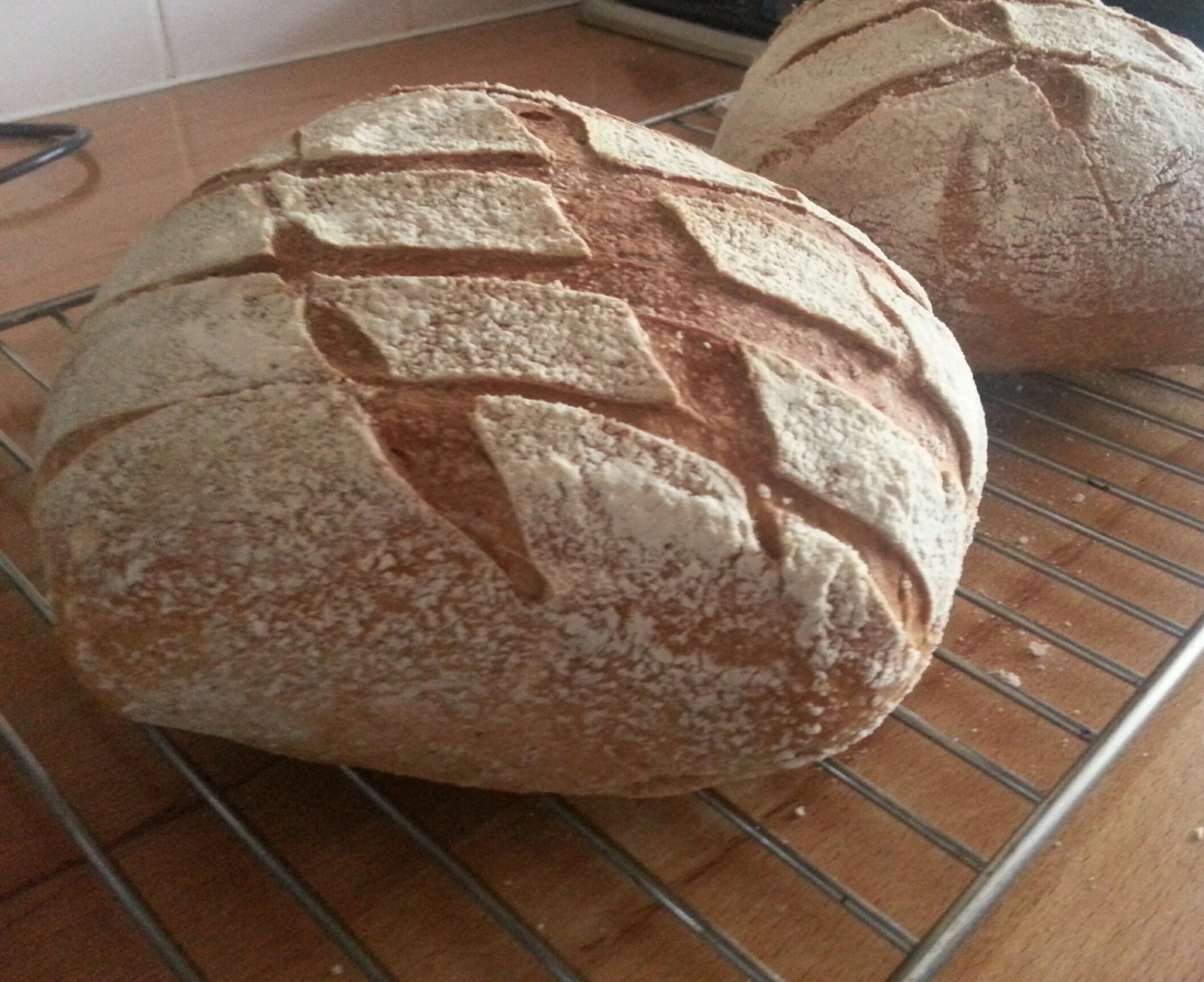 dusted proving baskets (or two bowls lined with floured tea towels),